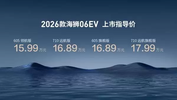 作为组合中率先上市的车型,2026款海狮06EV以15.99万元至17.99万元的定价切入新能源中型SUV市场。该车型延续了插混与纯电双动力路线,其纯电版凭借去年上市后仅用数月便突破十万辆销量的成绩,成为行业内增速最快的爆款车型之一。此次升级中,新车全系支持选装天神之眼5.0智驾系统,可实现城市领航辅助、高速智驾辅助及全场景泊车功能,智能化水平显著提升。配置层面,新增的前排座椅记忆、按摩、腰撑及副驾腿托功能,配合琉光银外观与暮色蓝内饰配色,进一步强化了舒适性与个性化体验。TBC高速爆胎稳行系统的加入,使车辆在极端工况下的安全性得到保障。