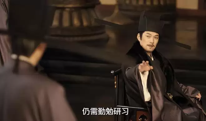 深紫官袍加身,身姿挺拔如松,一句低沉且富有磁性的“陛下,臣来晚了”,可谓是先声夺人,愣是让皇帝都不敢大小声了。