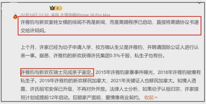 许雅钧风波升级!知情人曝小三与私生子长居上海内幕