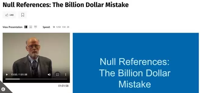2009 年,在伦敦 QCon 软件大会上,75 岁的霍尔站上台,以一种罕见的姿态,向全场数百名工程师正式致歉。他称 null 引用为“价值十亿美元的错误”(the Billion Dollar Mistake)。因为一个小小的 null 在过去四十年间造成了无数错误、漏洞和系统崩溃,带来的损失恐怕超过十亿美元。