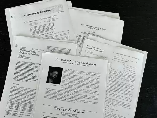 他提出的霍尔逻辑(Hoare Logic),是一套用数学方式验证程序正确性的公理体系。简单来说,它允许程序员用严格逻辑证明一段代码“一定会做到它声称要做的事”,而不只是靠测试碰运气。这套理论奠定了形式化验证领域的基础,今天航空、汽车、核能等安全关键领域的软件认证,仍在使用它的衍生工具。