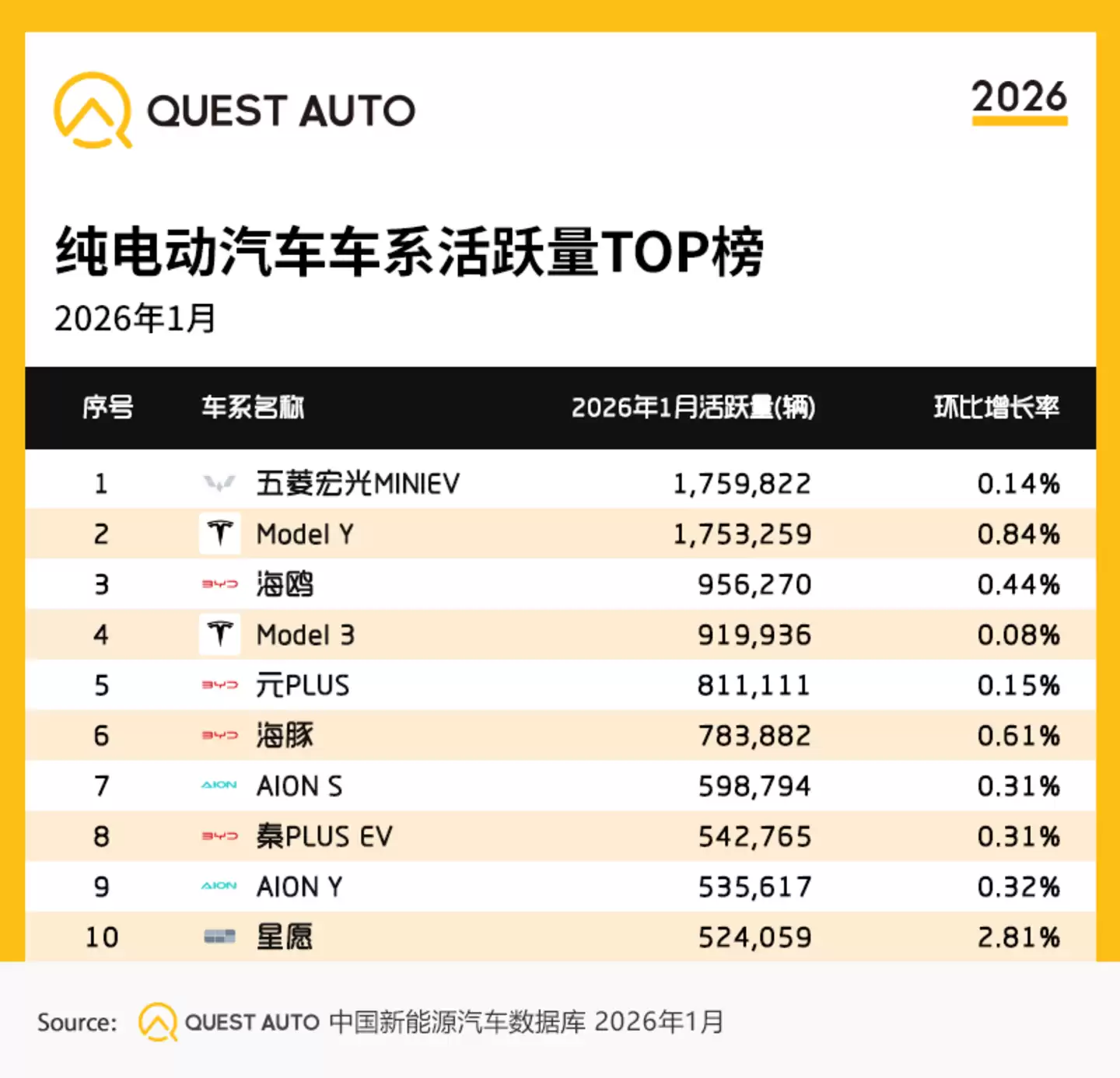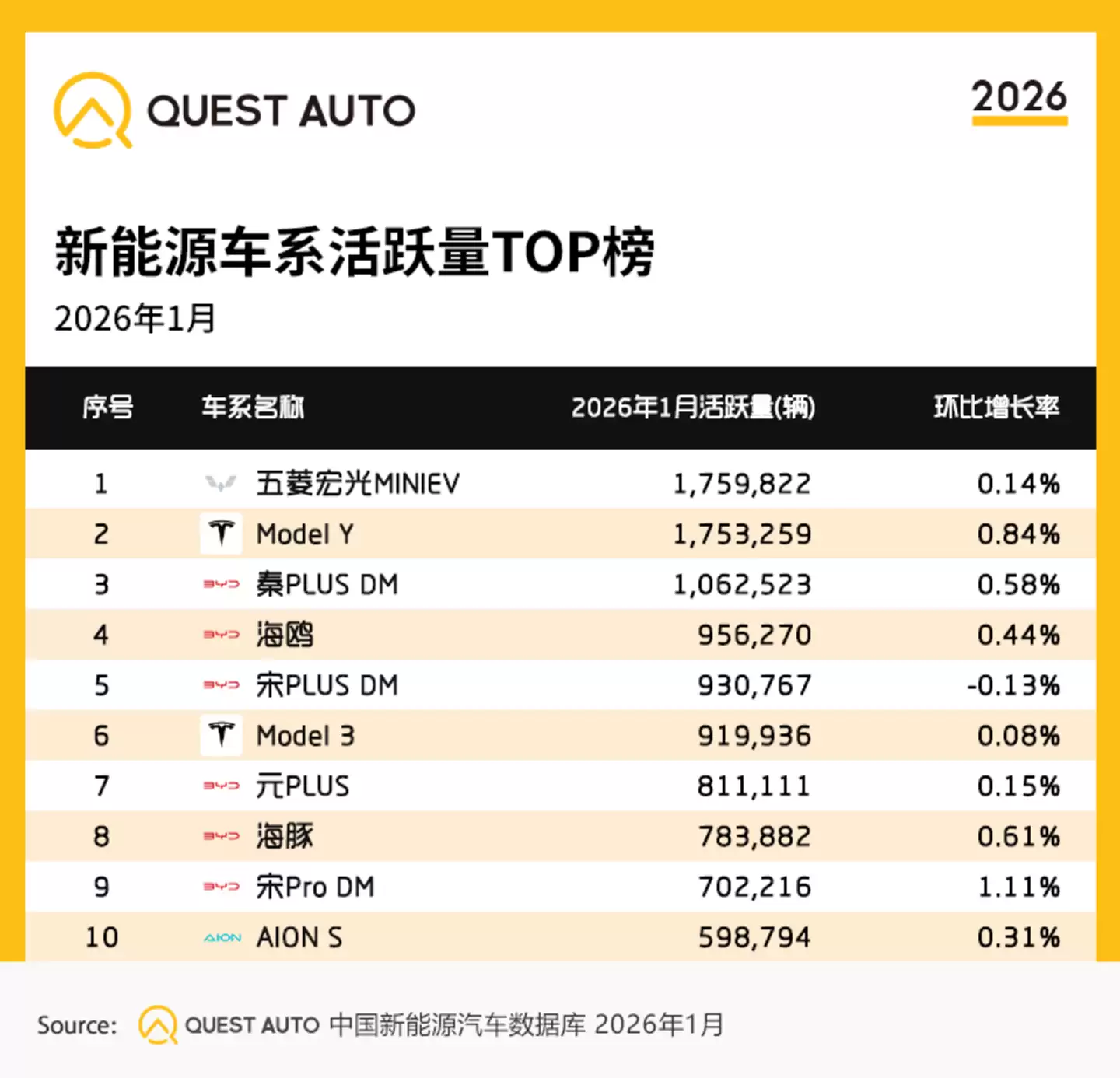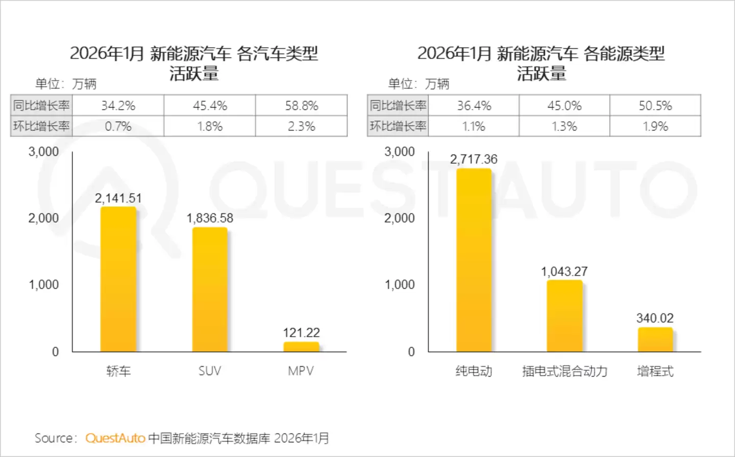 这些数字的达成,靠的是实打实的销量和活跃保有量支撑,总不会有什么争议吧?如QuestAuto数据显示,2026年1月,比亚迪活跃量已经近1130万辆,吉利银河同比激增158.9%;销量方面,尽管受去年年末冲量带来的季节性回落影响,整体“开门冷”,但是,赛力斯汽车、小米汽车销量依旧达到4万辆、3.9万辆,同比增长了83.3%、70.3%……