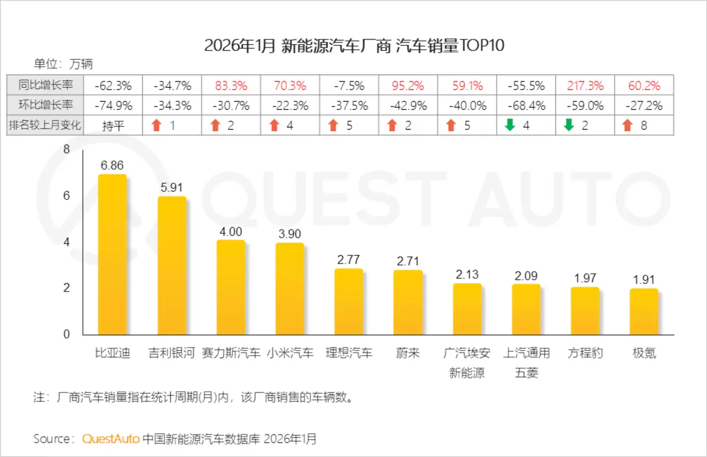 2026年新能源车市场洞察:赛力斯、小米汽车销量增长超83%与70%