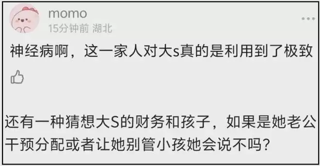 为什么小S一心搅散大S和汪小菲?也许是嫉妒吧,但若是大S和汪小菲幸福圆满,只会越来越关注自己的小家,S家还怎么吸血?许家还怎么获利?