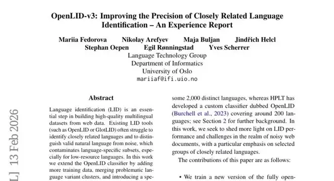 这项由奥斯陆大学信息学系语言技术小组主导的研究发表于2026年2月的arXiv预印本平台(论文编号:arXiv:2602.13139v1),研究团队开发了一个名为OpenLID-v3的语言识别系统,专门用于解决AI在识别相似语言时经常出错的问题。