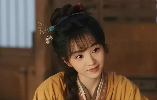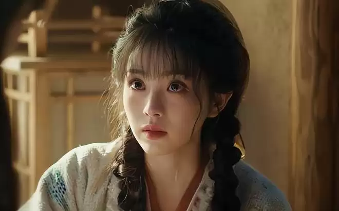 她饰演的屠户之女樊长玉,穿着粗布麻衣、扎着麻花辫,齐刘海下一双圆眼明亮清澈,勾起嘴角脸颊上出现两个梨涡,微微歪头盯着男主,俏皮可爱。
