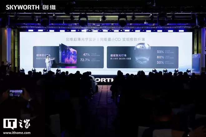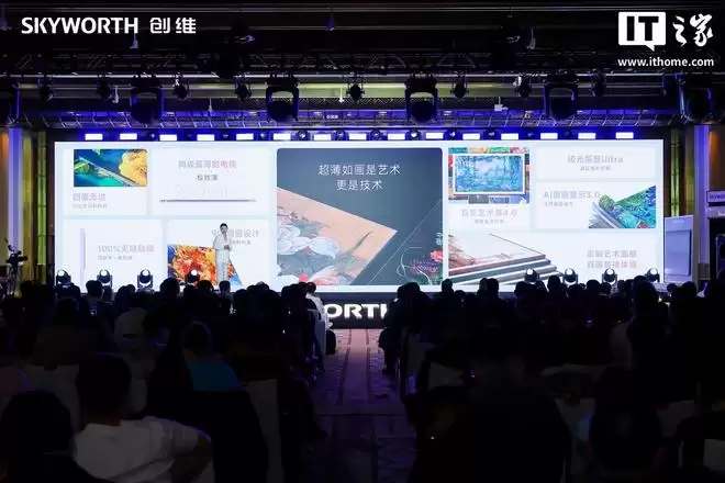 创维壁纸电视 A10H 系列还搭载创维自研「超薄乾坤架构」,拥有超薄光学、超薄电源、超薄声学、超薄散热四大设计,同级最小 OD + 超能聚光灯珠,宣称光效提升 80%。