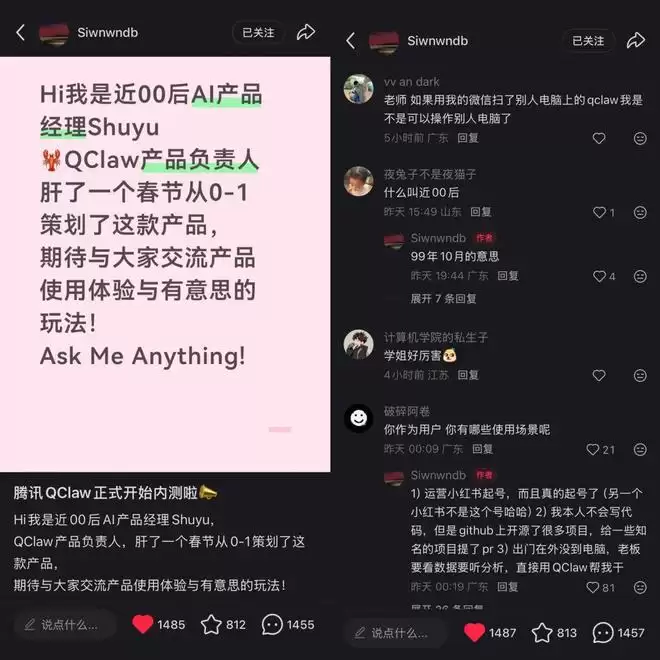据了解,QClaw 由腾讯电脑管家团队开发,产品负责人舒昱是一位近 00 后(99 年 10 月),整个开发周期仅约两周。