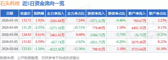 3月10日石头科技股价微涨1.92% 主力资金净流入超2500万