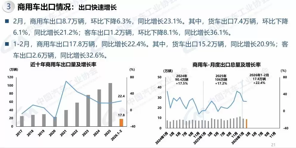 2026年2月商用车市场:货车微降客车增,新能源出口分化明显
