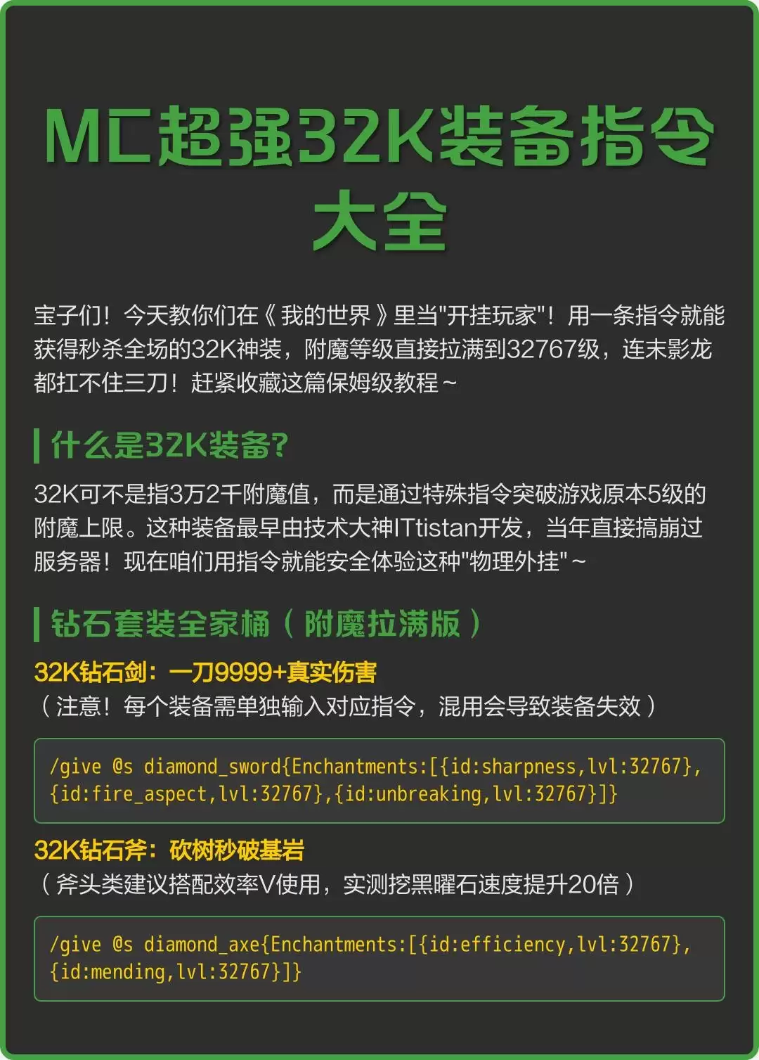 我的世界32K附魔指令教程:轻松获得顶级武器方法