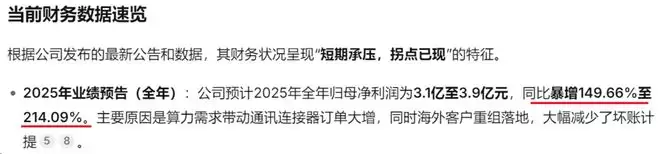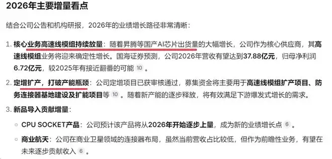 连接器业务:这是公司的老本行和利润核心,产品主要用于通讯、消费电子等领域。特别是在通讯连接器方面,公司是国内少数实现高速连接器及光电模组量产的企业,已批量交付400G/800G等高速产品,深度绑定华为、中兴等大客户。