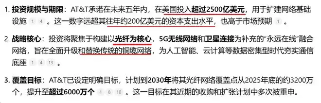 1、AT&T 2500亿美元光纤投资