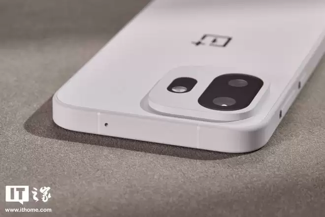 一加 15T 首发提供了多款配色可选,包括治愈白巧、松泛抹茶、纯粹可可等。我们拿到的是主打色“治愈白巧”,其命名灵感源于巧克力,白色调显得格外纯净。中框和后盖虽采用了两种不同材质工艺处理,但色调统一高级,且表面均为哑光处理,色彩上高度一致。