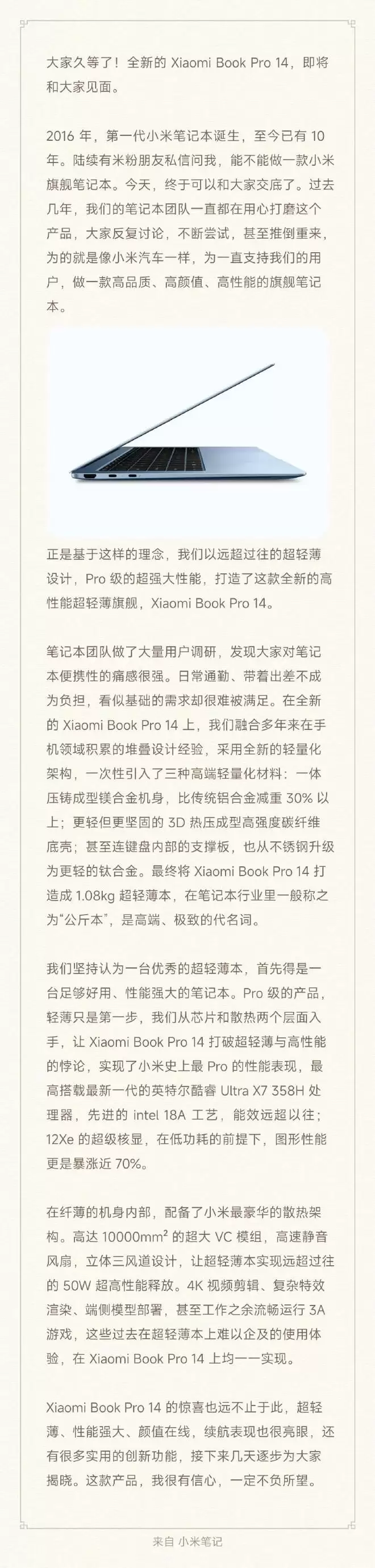 小米笔记本Pro 14预热:卢伟冰揭秘50W性能与镁合金机身