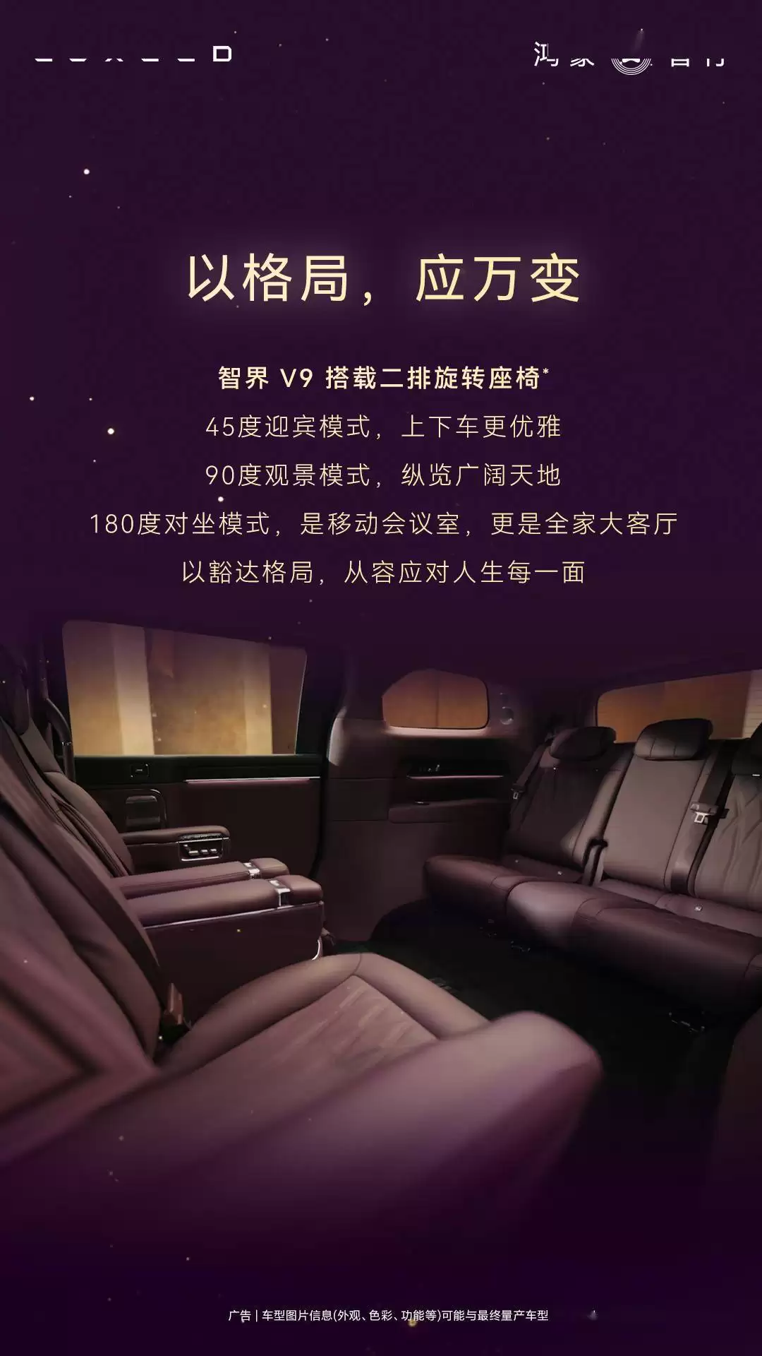舒适性配置方面,问界V9创新性地引入迎宾光毯系统,配合可旋转座椅与车载氧吧功能,营造出兼具仪式感与健康关怀的驾乘环境。整车通过材料工艺、空间设计、智能科技的深度融合,重新定义了高端新能源车型的产品标准。