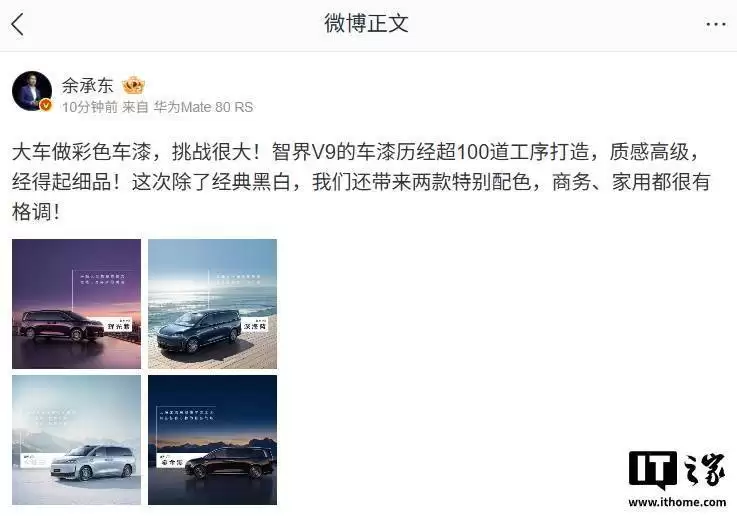 余承东揭秘鸿蒙智行V9:大尺寸车身高配亮点解析