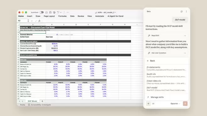 Claude这次更新还预置了包括财务模型审计、DCF模板构建、PPT逻辑润色等专业技能。