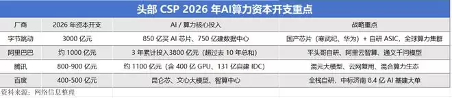而AI基建的投资主体则呈现云服务商(CSP)、运营商、国企三方协同、合力共建的格局。头部CSP 2026年合计资本开支约4300亿~4400亿元,同比增长20%,AI算力、数据中心、自研芯片是核心投向。三大运营商加快算力网络布局,均已建成万卡级智算集群,推动“云网边端”一体化,成为国家级算力网核心承载平台。央企与地方国资依托能源、土地、资金优势,在国家算力枢纽节点大规模建设绿色智算中心。例如,国家超算互联网郑州节点,建设scaleX万卡超集群,成为国内最大运营中的纯国产AI算力池。