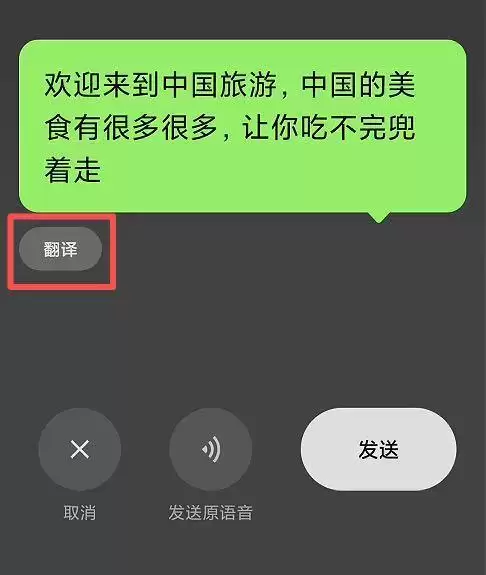 说的是乡音,发出去的是外文,出国旅游打开微信就是一个简便的翻译工具,确实方便。