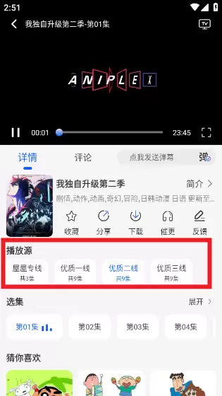 3. 应用内置了多条播放线路。如果您遇到播放卡顿、无法观看或画质模糊的情况,都可以通过切换播放源来解决。