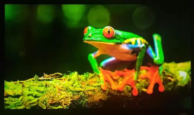 海信E8S在高亮度下拥有超过10000:1的对比度,黑色不发光,黑色与发光区域的过渡也非常干净,整体控光能力堪比OLED电视。