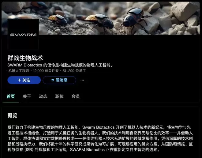 公开资料显示,这家名叫SWARM Biotactics的公司,确实在做基于活体昆虫的生物机器人系统,目标场景就是国防、国家安全、灾害响应和工业巡检。