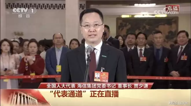 3月12日,第十四届全国人民代表大会第四次会议第三场“代表通道”集中采访活动在北京人民大会堂举行。全国人大代表、海信集团党委书记、董事长贾少谦作为制造业和实体经济代表,回答了记者提问。