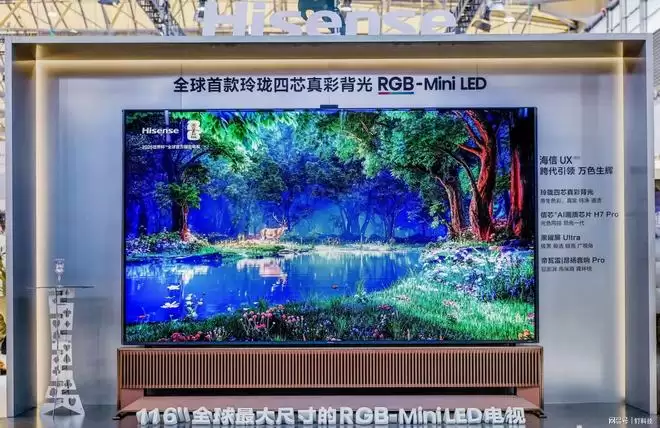 而在当天开幕的2026年中国家电及消费电子博览会(AWE2026)上,海信电视带来了搭载这两颗引领“中国芯”的超旗舰产品——全球最大的RGB-Mini LED电视116UX2026款。