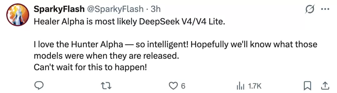 还有人猜测它们是两款中国模型,其中Healer Alpha很可能是DeepSeek V4或V4 Lite。