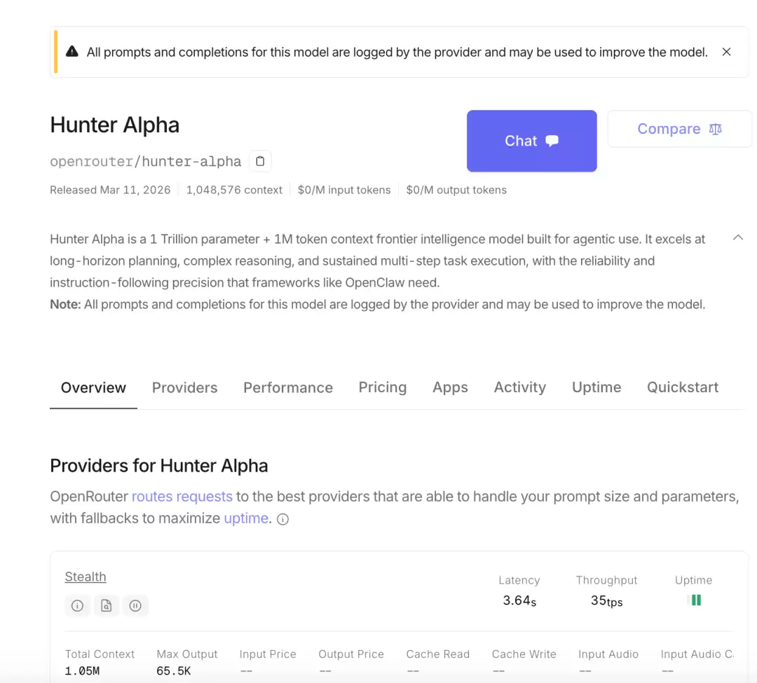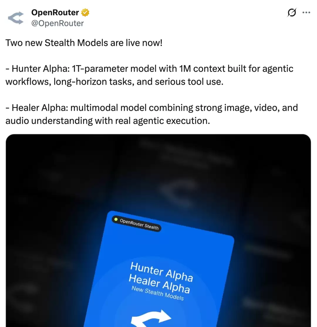而就在今天早上,全球知名大模型聚合平台OpenRouter突然上架了两个神秘模型,分别是“Hunter Alpha”和“Healer Alpha”。