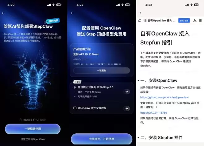 尽管天下没有一直免费的午餐,这个免费使用限时 1 个月,但阶跃给的 Token 额度,足够你配置好自己的龙虾,并摸索、使用很长一段时间了。除了 APP 端以外,StepClaw 明天还将在阶跃 AI 网页端上线,支持部署和使用。