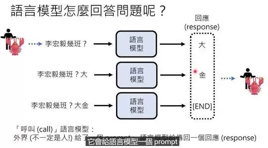我们可以通过以下两张图片了解语言模型的文字接龙模式和回答问题的方式。