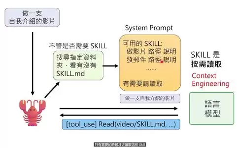 当需要做视频时,语言模型会去读这个Skill文件,按步骤执行。Skill只是文字文件,所以你可以和别人交换——就像给AI直接输入新技能一样。