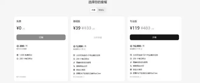 但如果微信是你离不开的舒适区,那能直连微信的 QClaw 就是唯一解,零学习成本;想花点小钱买个省心,顺带体验一把正经的付费服务,MaxClaw 39块包月,自带一堆预设专家,也不用怕两眼一抹黑。