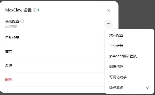 接下来登场的是 MiniMax 的 MaxClaw,只能说这只虾走了一条不太一样的路。