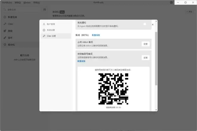 而且,这玩意通讯工具覆盖面也是最广的——QQ、飞书、钉钉都能接,然而,谁都没有想到,在QClaw还在内测的时候,WorkBuddy就提前上线了接入个人微信的功能。