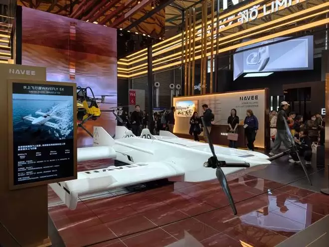 WaveFly 5X是全球首款消费级水上飞行器,最高时速85km/h,支持3分钟快换电池,一次换电能连续飞140分钟;飞行卡丁车则配备航空级安全系统,支持一键起降,整机重量仅73.6kg,门槛更低、更贴近普通人使用。