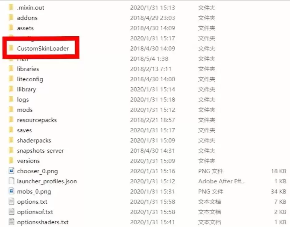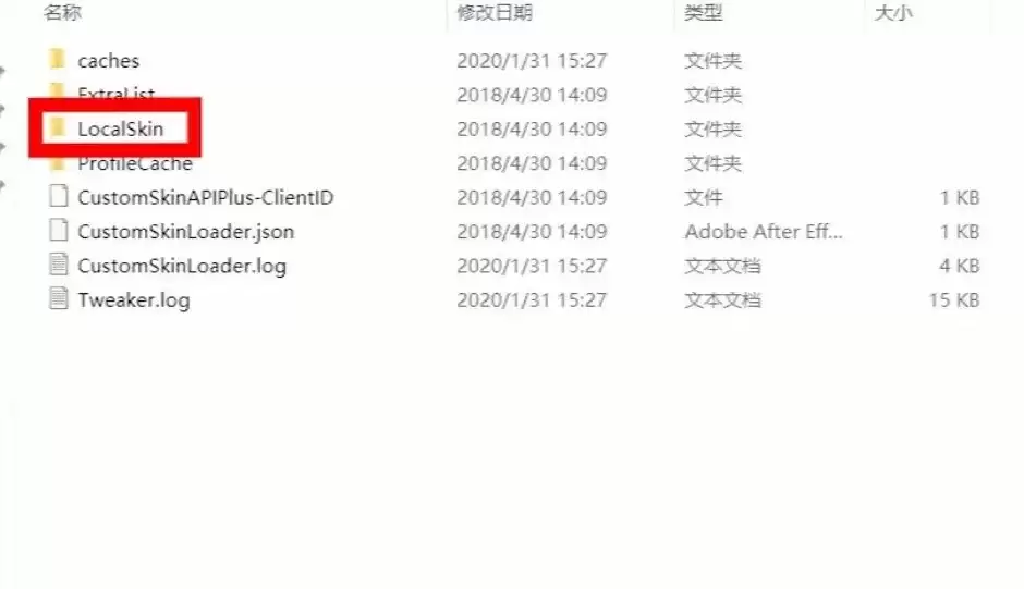 打开游戏目录下的“minecraft-customskinLoader-localskin”文件夹。你会看到里面有三个文件夹,第三个是专门存放皮肤的,打开它。
