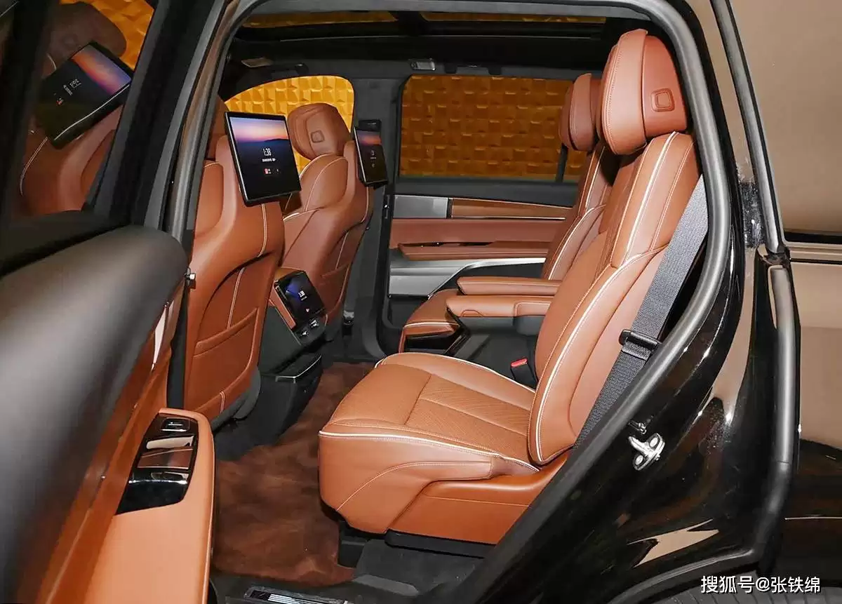 内饰空间突破传统豪华定义,全车搭载5块智能屏幕形成沉浸式交互矩阵。中控台上方悬浮着33英寸弧形超视网膜屏,下方8英寸触控屏与副中控台形成功能分区。两辐式方向盘创新融入木纹饰板与铬镲元素,在科技感中注入经典美学。后排区域配备三块独立屏幕,分别位于前排座椅靠背与中央扶手后方,配合B柱及扶手箱后部的空调出风口,构建出全维度舒适体验。