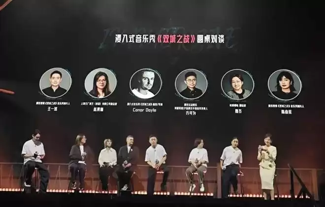刚刚散场的观众们还三三两两地聚集在门口,一边等车一边兴奋的复盘着自己刚刚所观看的剧情。这场筹备历时两年的浸入式音乐秀《双城之战》(以下简称双城音乐秀)正式迎来了全球首演之夜。