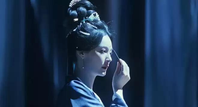没有过分华丽的衣着,素衣淡妆,额间花钿,悲情却又不凄苦,整个人美得像是一幅画。