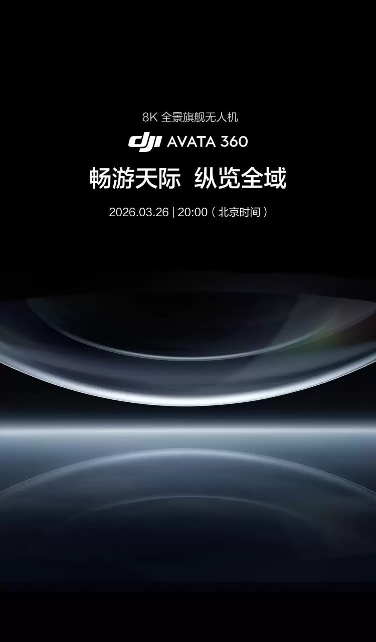 3月13日最新消息,大疆近日正式发布了首款8K旗舰级全景无人机DJI Avata 360。这款产品聚焦8K全景影像拍摄与卓越的飞行体验,将于北京时间3月26日20:00面向全球正式亮相。