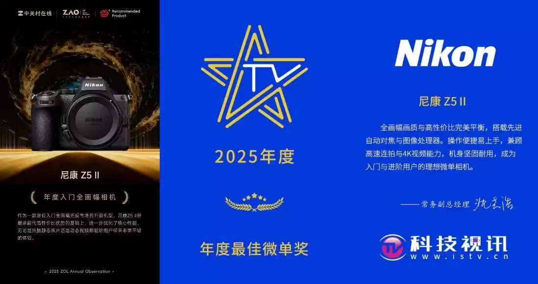 尼康Z5Ⅱ、尼克尔Z 24-70mm f/2.8 S Ⅱ等实力产品成功入选PetaPixel年度最佳榜单,尼康Z5Ⅱ获评DPReview“2025年度最佳发烧友相机”及“2025年度产品”。一系列国际认可,充分彰显了尼康产品的研发水准与市场竞争力。
