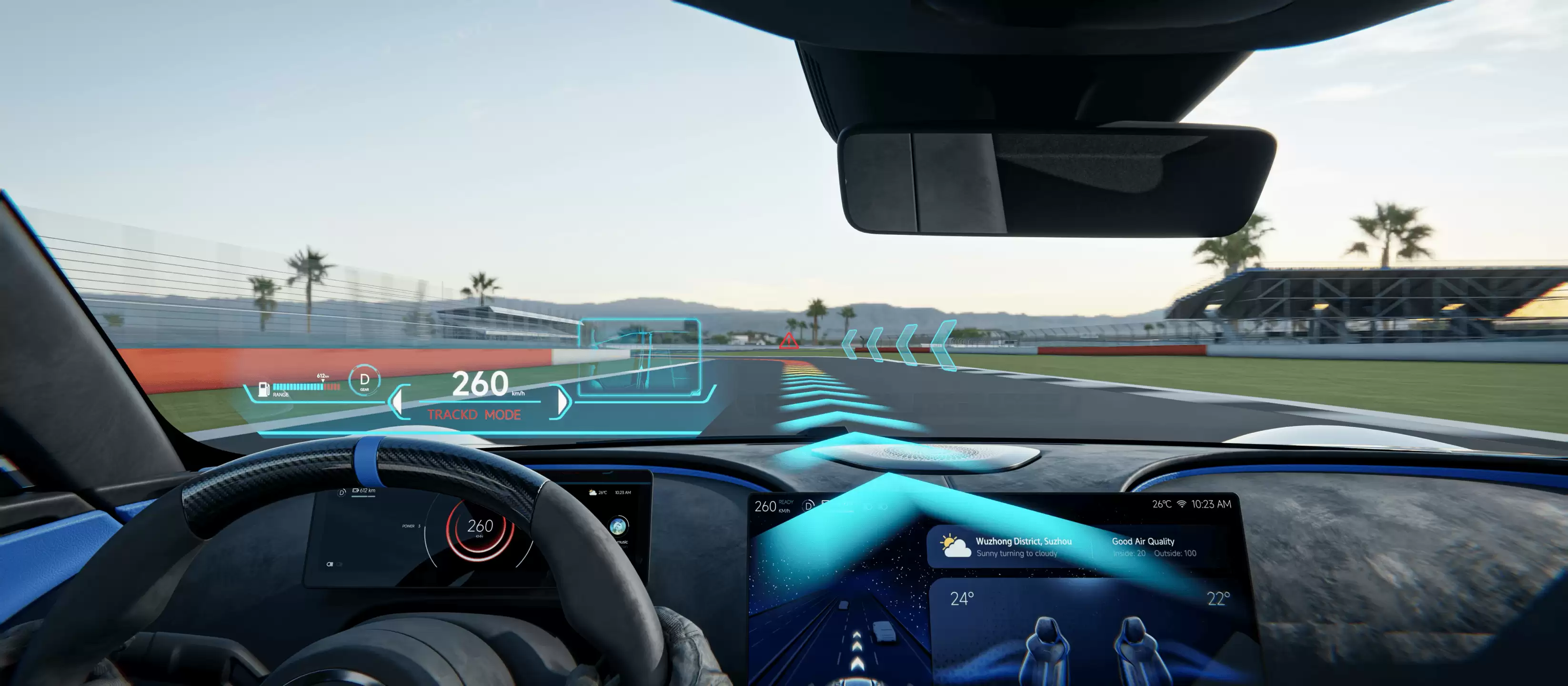 性能方面,STAR MATRIX预搭载4组1200V高压580kW永磁同步电机,动力表现备受期待。其核心亮点在于首创的AI Coach + AR辅助驾驶系统。这一系统突破了传统驾驶辅助的局限,将AI决策与AR可视化技术深度融合,为驾驶者提供“看得见的智能”体验。通过实时数据投影与智能指导,该系统显著提升了驾驶安全性与便捷性。