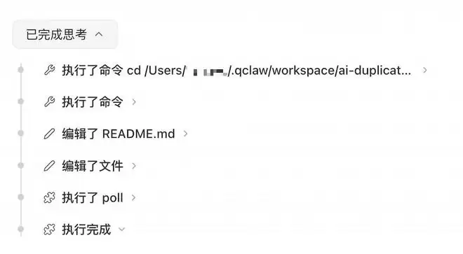 指令发出后,QClaw很快开始执行任务。