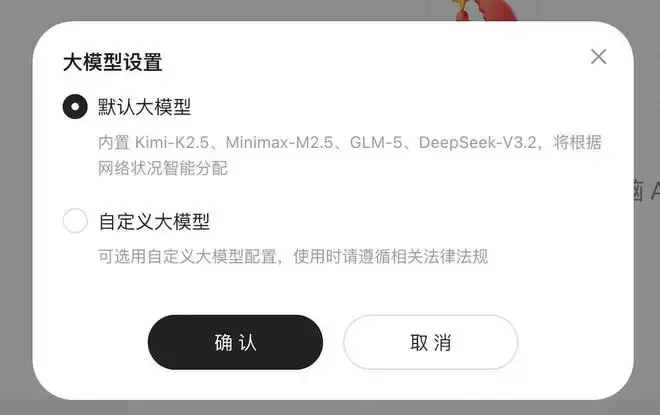 在模型能力上,系统默认采用混合路由方案,可自动调用DeepSeek、Kimi、MiniMax等国产主流大模型,目前token处于免费阶段。用户也可以选择自定义模型,通过API Key接入千问、混元、豆包等模型。