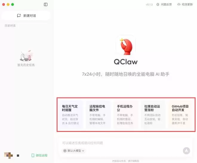 如果只看功能,QClaw做的事情并不复杂:远程操作电脑、自动执行任务、跑一条完整的开发流程。但当这些能力通过微信连接之后,体验的感觉会有些不同。