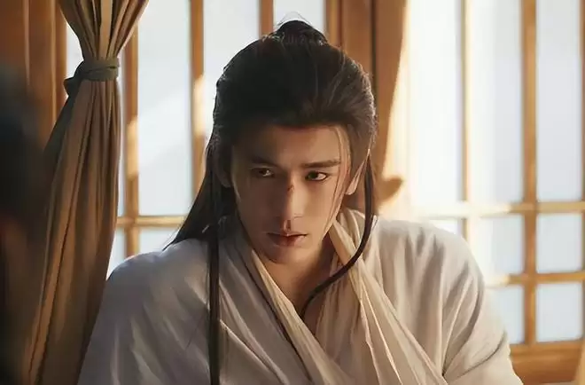 别看张凌赫出场时是破碎、苍白的“病弱美男”,一身白衣显得有些单薄,像是一阵风吹来就会倒。
