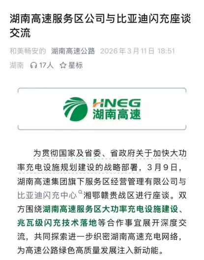比亚迪闪充技术落地湖南高速,破解长途充电难题